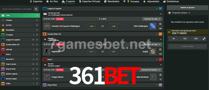 O 361bet oferece uma grande seleção de opções de apostas em e-sports com probabilidades competitivas